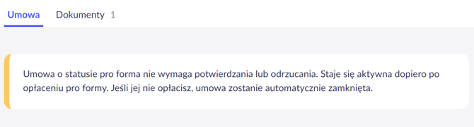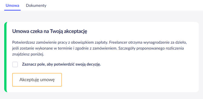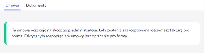 Zobacz szczegóły umowy i zaakceptuj ją, jeśli wszystko jest w porządku. Akceptacja to obowiązek zapłaty – wyślemy Ci maila z fakturą pro forma do opłacenia.