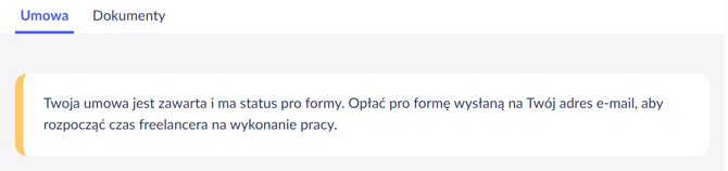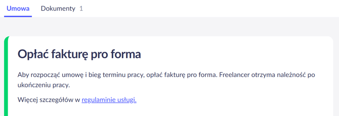 Sprawdź maila lub zakładkę Dokumenty – wysłaliśmy Ci fakturę pro forma z linkiem do płatności. Freelancer może zacząć pracę nad zleceniem, dopiero jak Twój przelew do nas dojdzie.